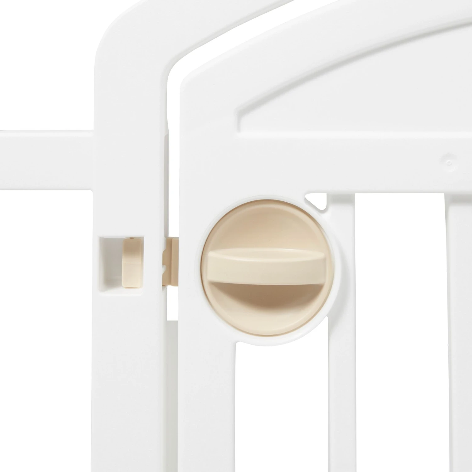 Playtime or downtime is always fun with the Frisco Plastic Dog Exercise Playpen with Door! It keeps your pooch enclosed safely in 18 square feet of comfortable space, indoors or outside. With individual panels featuring an interlocking design that easily snaps together and a secure, double-latch door requiring no extra assembly, it’ll be ready for use in no time. You can also adjust the shape of this paw-some pen to hold your best pal’s food and water bowls, toys and even a comfy bed. To protect your floors from scratches and scuffs, the panels offer non-skid rubber feet to help keep it in place.