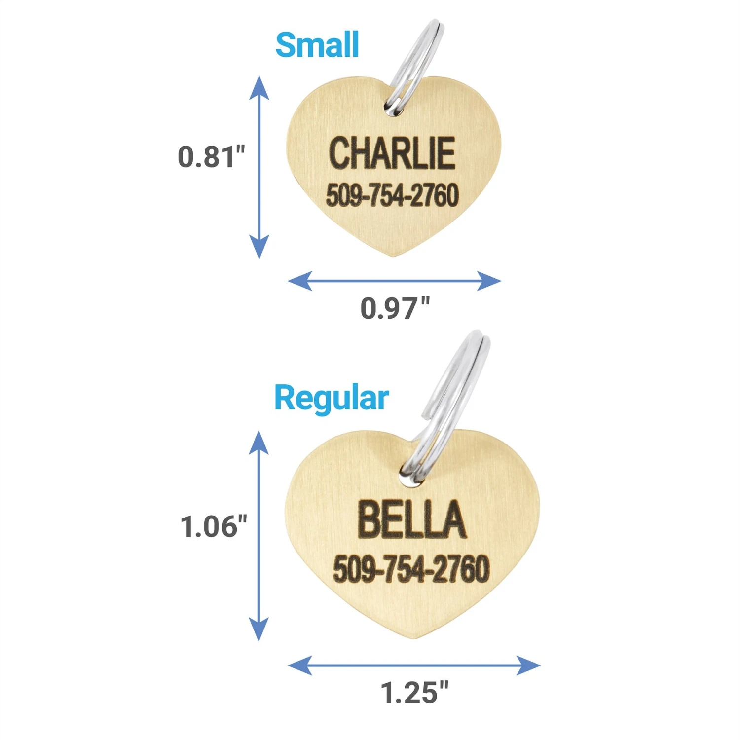 - Customizable, heart-shaped ID tag made of classic, durable brass.
