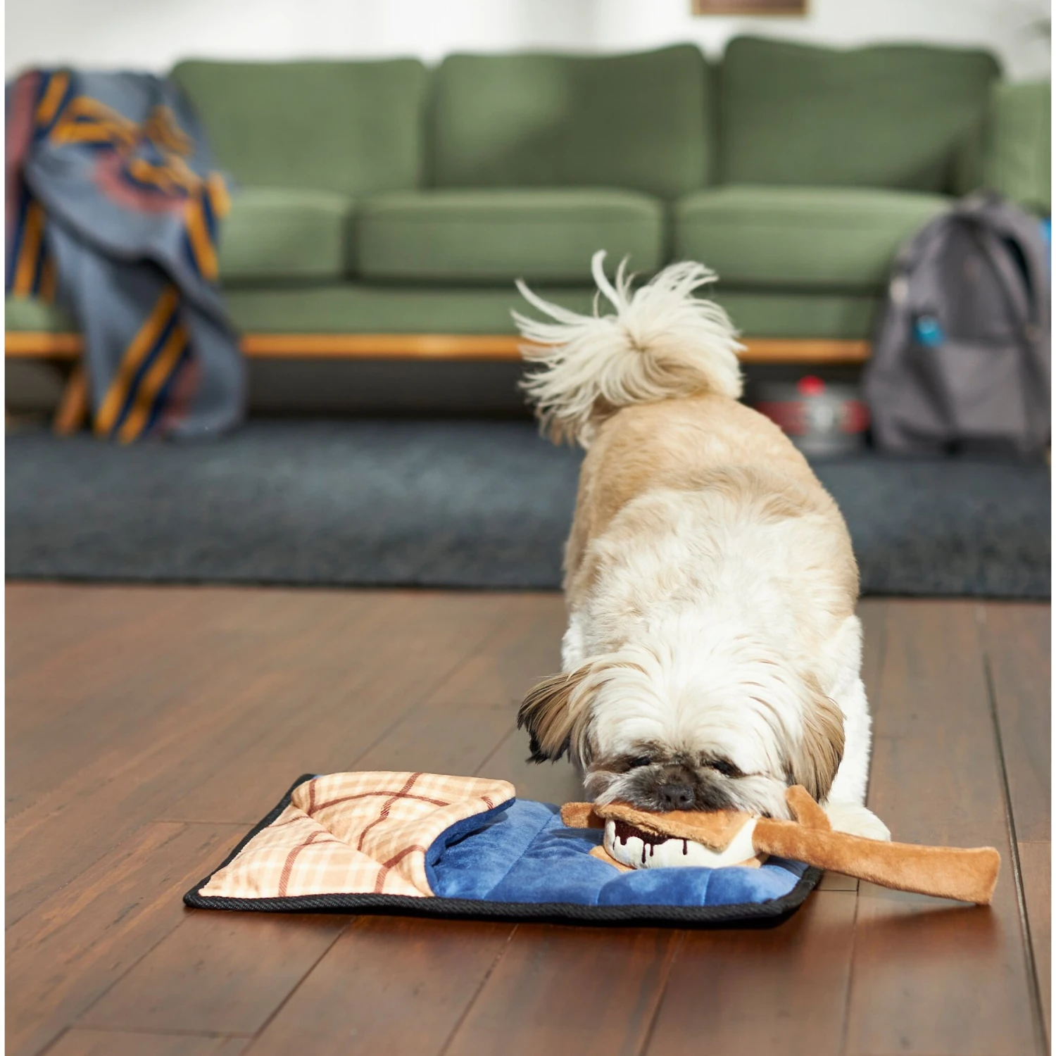 Bring the fun of the great outdoors to your pup’s greatest games with this set of plushy camping essentials. Whether you’re playing at the campsite or couch-side, you get a plushy sleeping bag and s’mores to turn up playtime for your outdoorsy dog. Made with super soft, cuddly Velboa plush, these camp-out must-haves are perfect for chilling in, too.