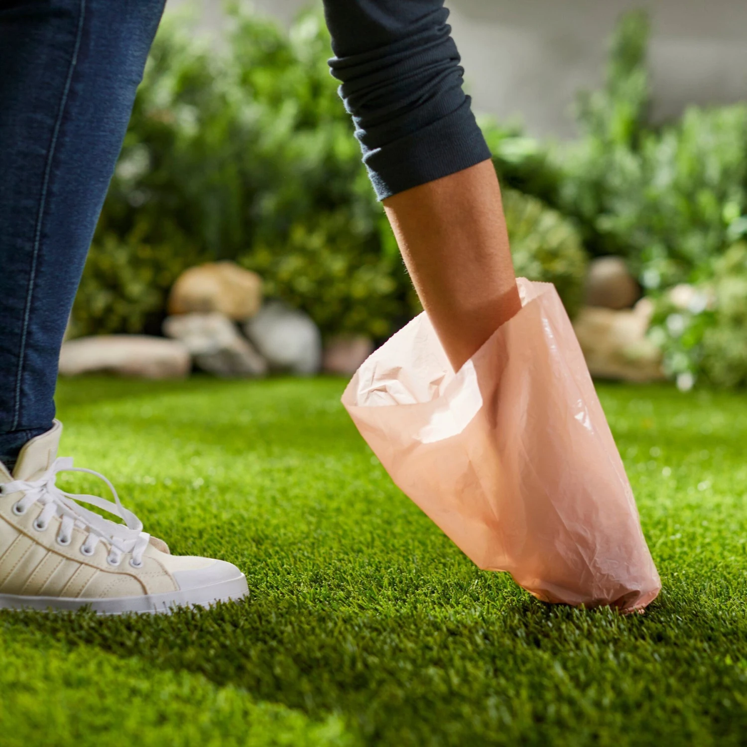 The bags are made of durable, leak-proof plastic, each roll includes 15 bags that fit into most standard-sized leash dispensers.