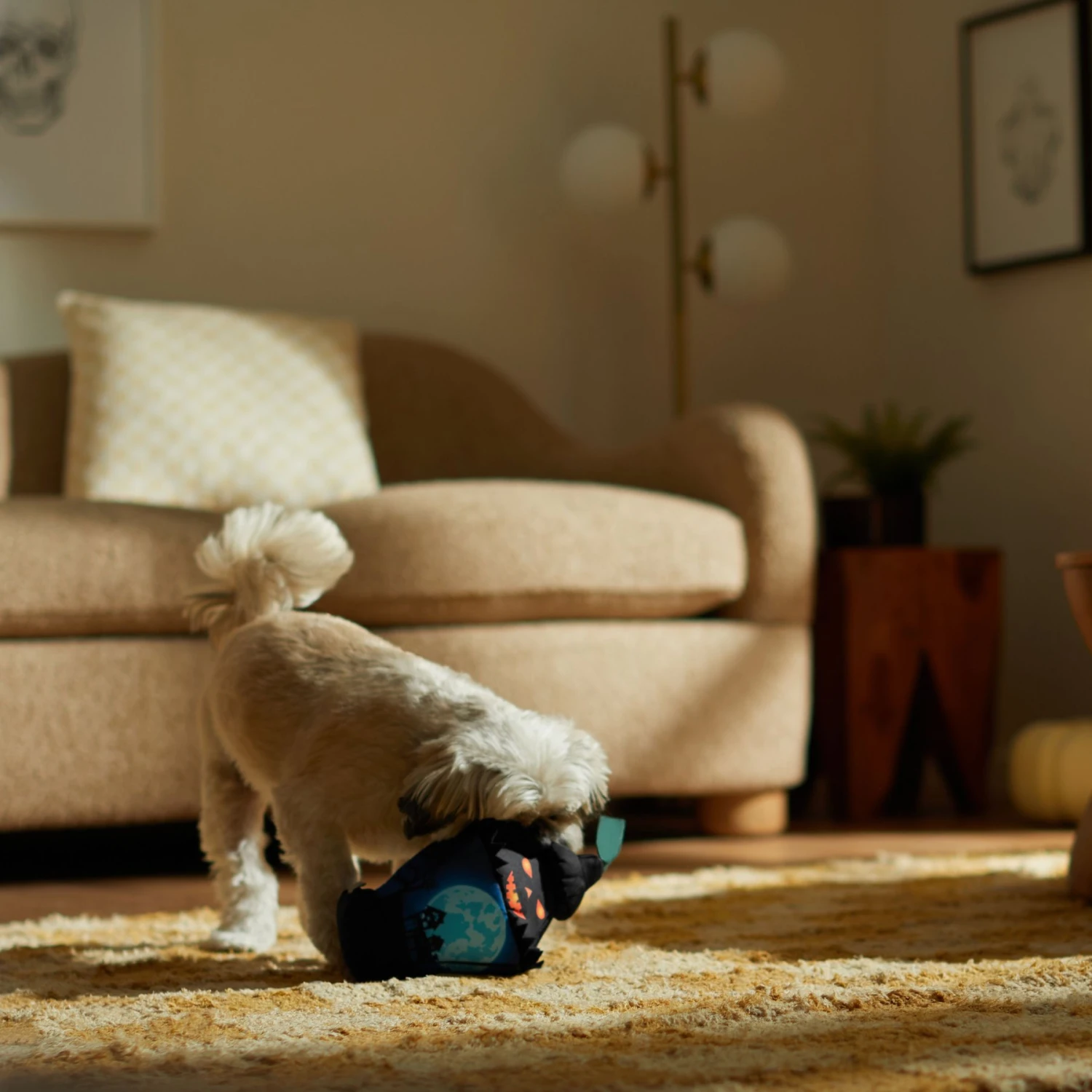 Turn up the Halloween shenanigans with this ballistic nylon plush squeaky lantern toy from Frisco by Chewy. Your pup won’t be afraid of the dark with this light in tow. It has the textures and sounds they crave, making it perfect for nonstop games. Whether by moonlight, daylight or lantern light, your pup will be having all the fun this Halloween and beyond!