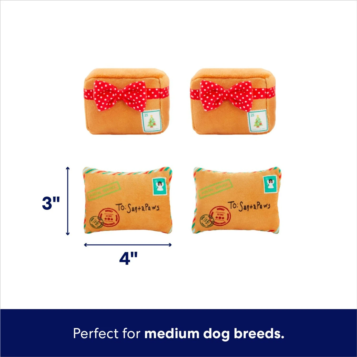 Frisco Holiday North Pole Mailbox Hide & Seek Puzzle Plush Squeaky Dog Toy, Medium—Your dog will have a blast as they drop off their letters to Ol’ Saint Nick with this holiday mailbox hide-and-seek toy, from Frisco by Chewy! Santa’s coming down the chimney and he’s read every letter from your good pup. The soft polyester material isn’t rough on your dog’s mouth, and it provides easy enough access to the prizes that await. Your pooch will be sending letters to Santa all season long and beyond!