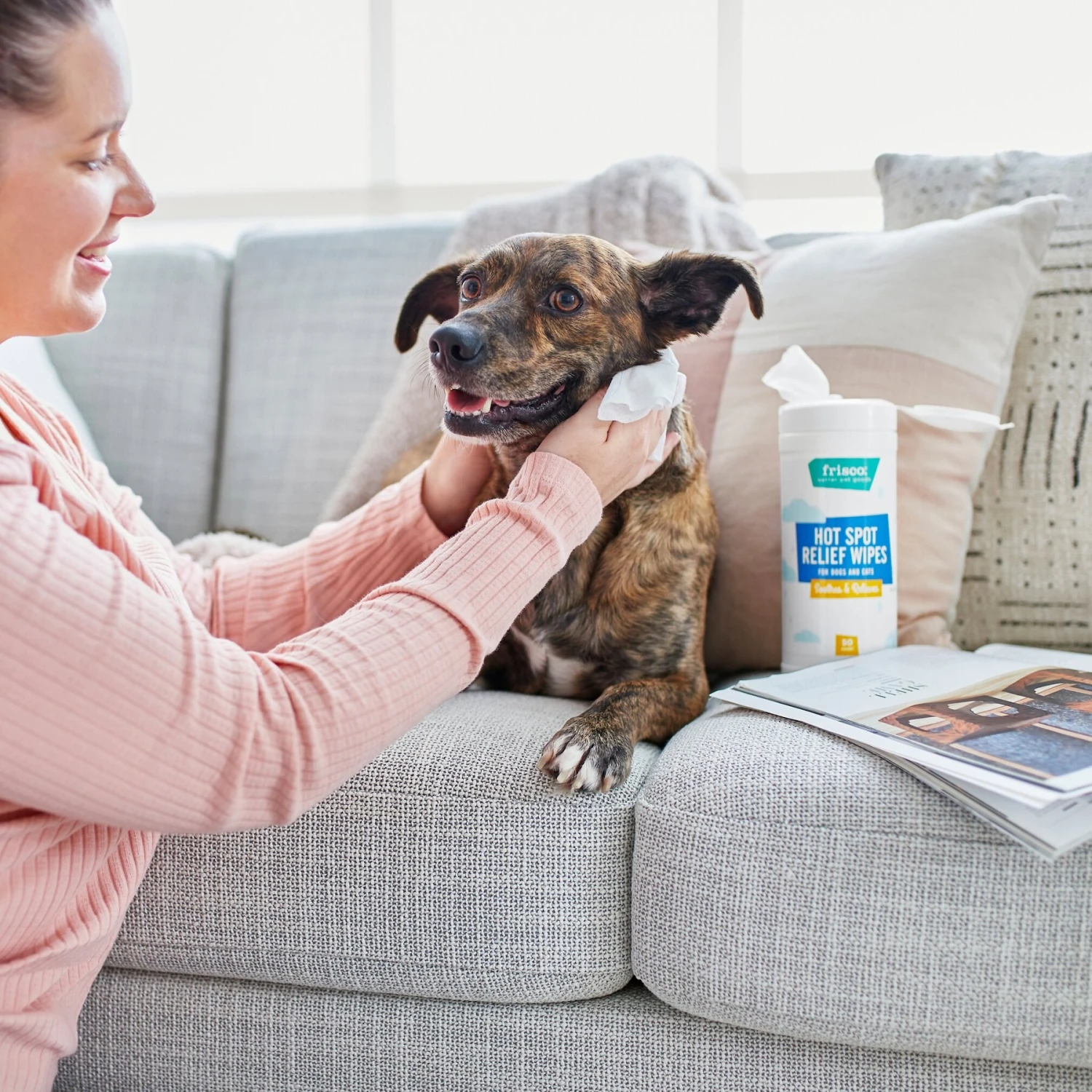 - From Frisco by Chewy. Hot spot relief wipes are formulated to help relieve itchy, irritated skin.