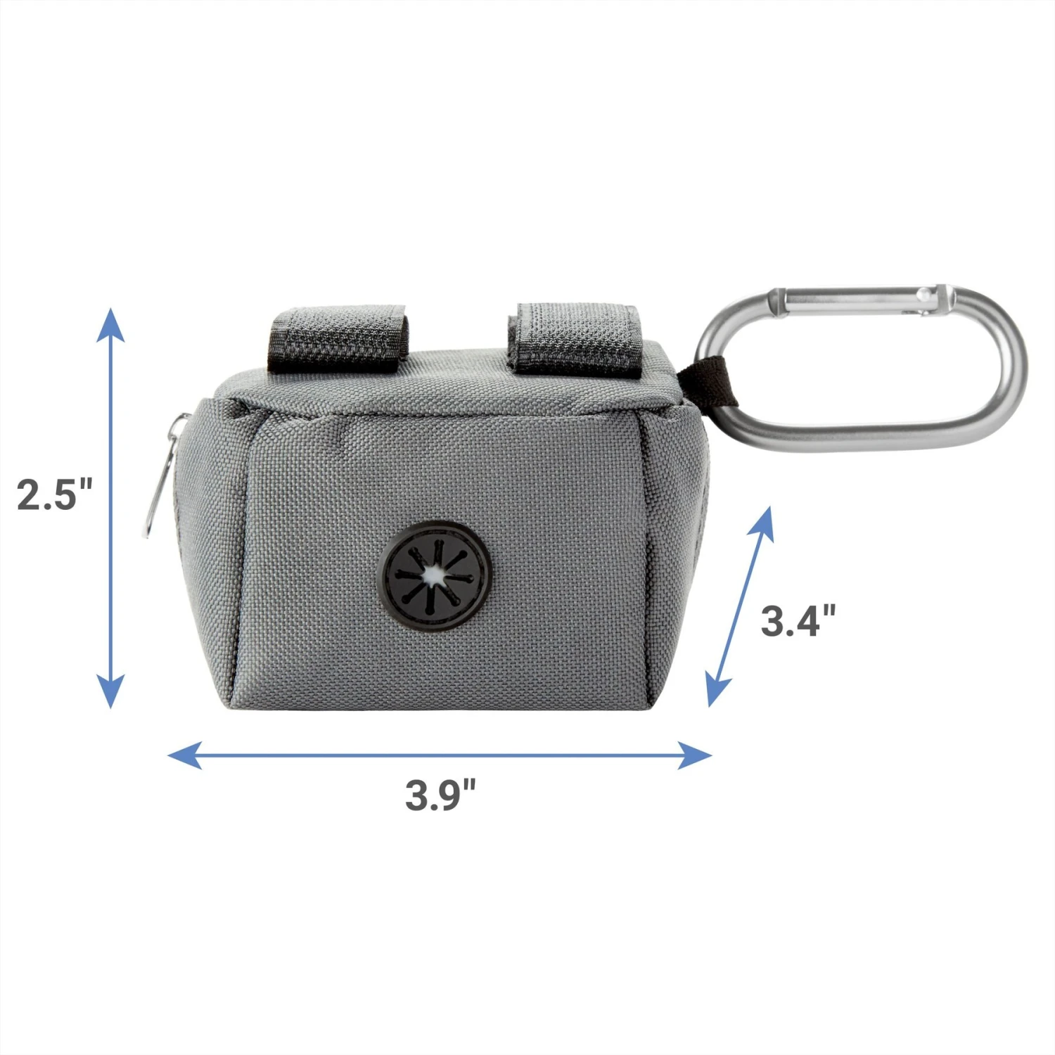 - Dispenser features a carabiner and hook-and-loop straps to attach easily to most leash types.
