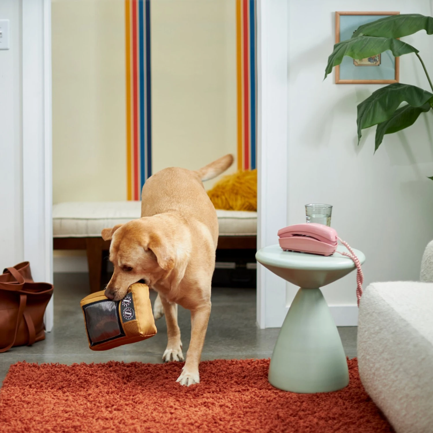 Have a TV party with your pup tonight! This retro, wood-paneled TV toy brings you back to the days of Saturday morning cartoons and prime time sitcoms while you play all kinds of dog games with your best fur friend, like catch and fetch. It’s covered in ballistic nylon, stuffed with squishy filling and it’s got a squeaker inside so you can turn up the volume on fun for your dog!