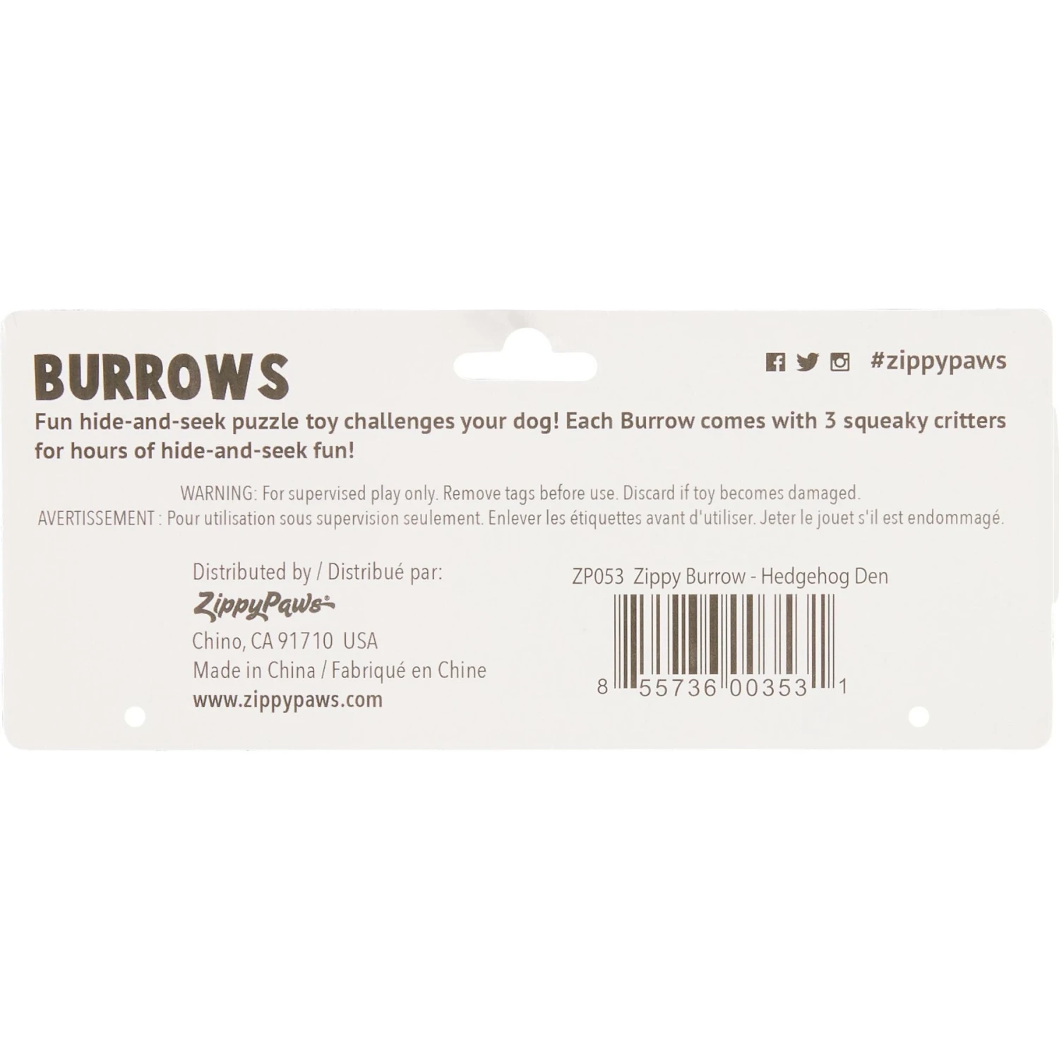 ZippyPaws Burrow Squeaky Hide & Seek Plush Dog Toy, Hedgehog Den, Puzzle Set—Dogs love burying their noses into the ZippyPaws Burrow Squeaky Hide & Seek Plush Dog Toy, for hours of entertainment. Simply hide one, two or all three of the included squeaky hedgehogs in the den, and this interactive plush toy will challenge your dog as he works to dig them out. And for even more fun, you can purchase the squeaky hedgehogs on their own. Great for small and medium-sized dogs, not suited for aggressive chewers. And it’s machine washable, making cleaning a breeze.