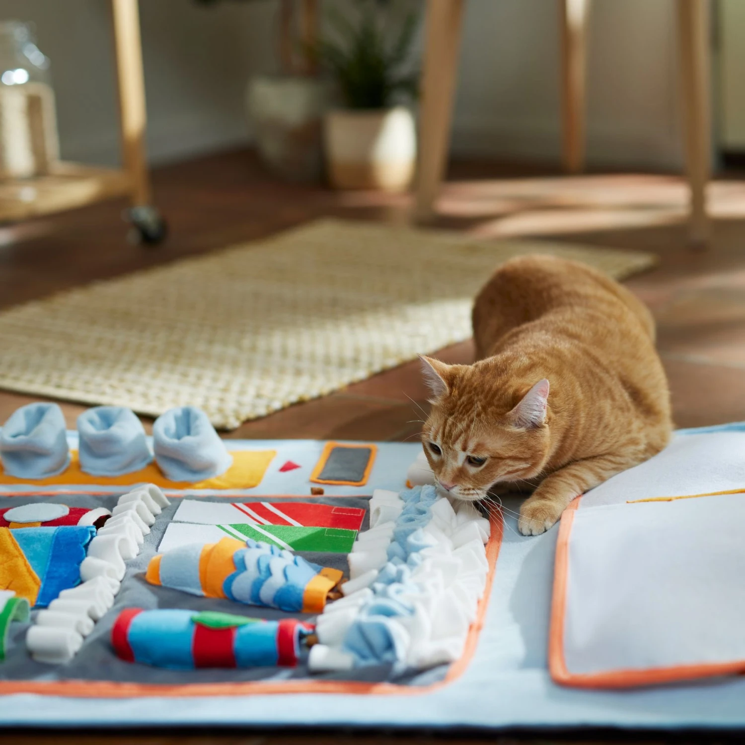 - Help stimulate their brain as they sniff out the food, mimicking hunting through grass and fields, as your dog’s ancestors did. Watch them delight in finding the treats you’ve stowed away in the pockets.